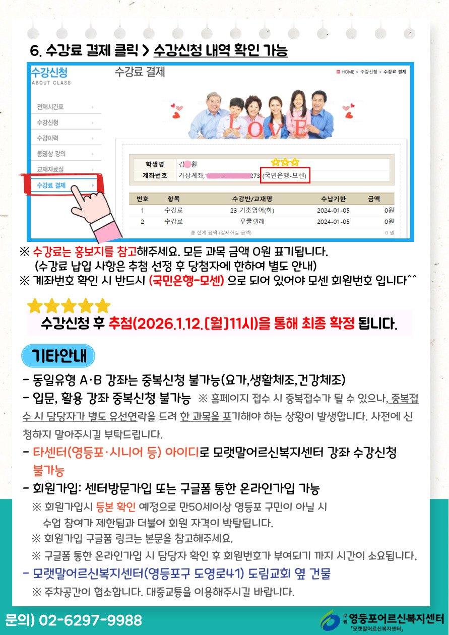 ② 온라인 수강신청이 어려우실 경우, 센터로 방문 부탁드립니다.