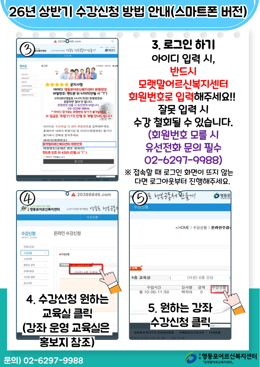 ⭐ 영등포어르신복지센터 수강신청 페이지